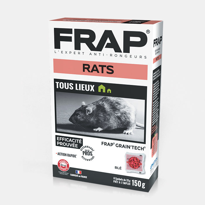 Ce produit est un appât anti-rats contenant 150 g de blé en sachets de 25 g, prêt à l’emploi. Il est destiné à stopper les dégâts des rongeurs dans tous les lieux de votre habitat. L’appât doit être utilisé dans des postes d’appâtage sécurisés. Ce produit est à utiliser emballé, le sachet poreux permet de diffuser l’odeur céréalière.